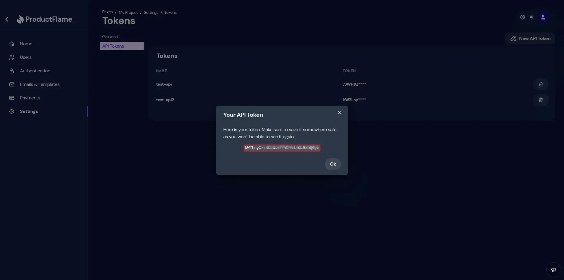 Section titled “Generate a token from dashboard”You can easily generate a token through your project interface.